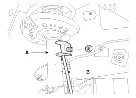 5. Disconnect the stabilizer link (B) with the front strut assembly (A) after loosening the nut.