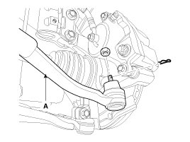 3. Remove the split pin and castle nut and then disconnect the tie-rod end (A) from the front knuckle.