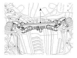 8. Loosen the mounting bolts and then remove the rear cross member (A) from the frame.