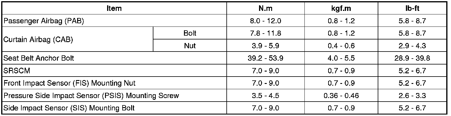 Tightening Torques