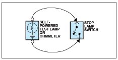 An ohmmeter can be used in place of a self-powered test lamp.