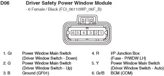 D06 Driver Safety Power Window Module: