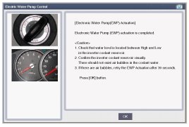 After air bleeding is completed make sure that coolant in the reservoir flow without air bubble during the EWP actuation.