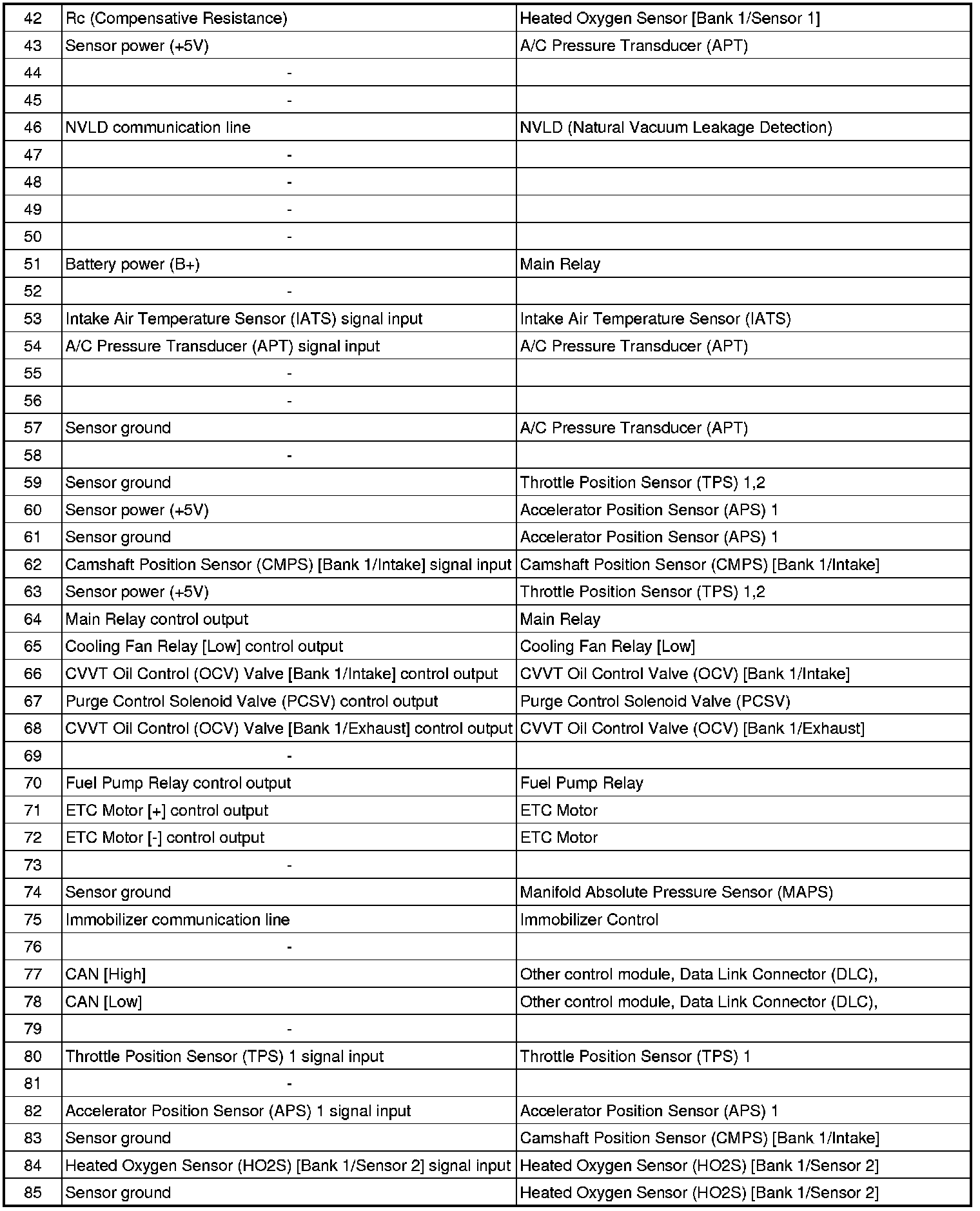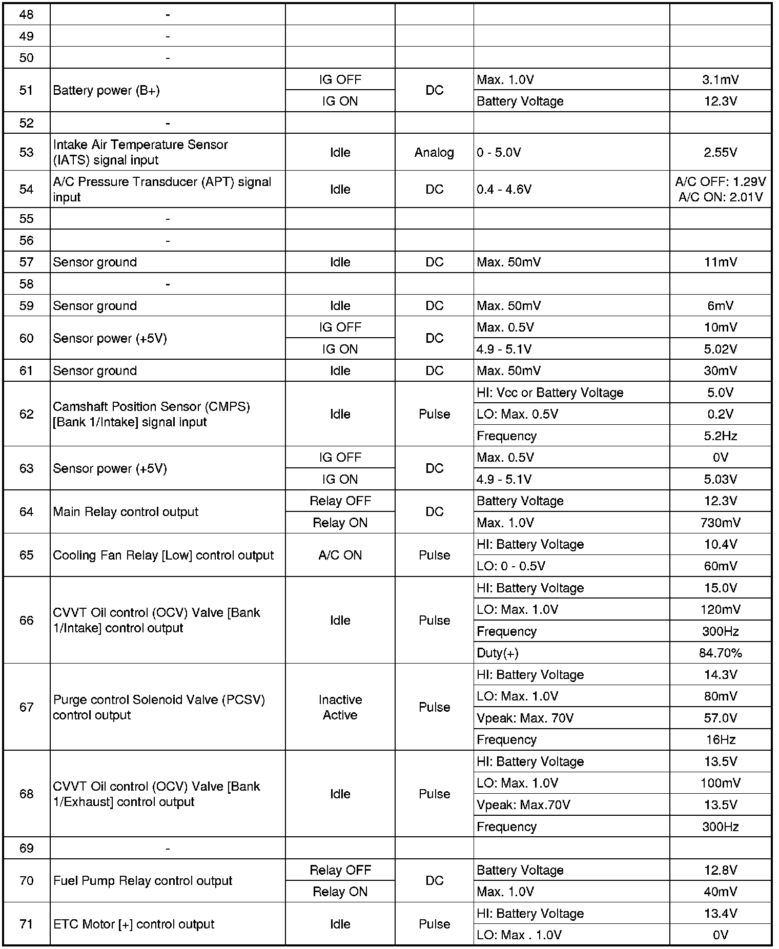 ECM Terminal And Input/Output signal