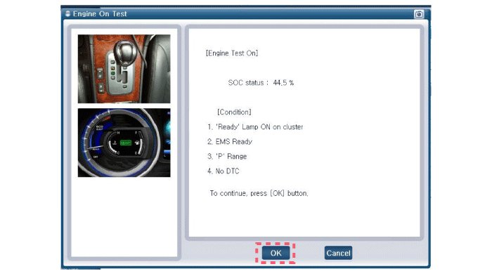 Engine may start anytime the vehicle is in READY mode.1. Warm up and stop engine.