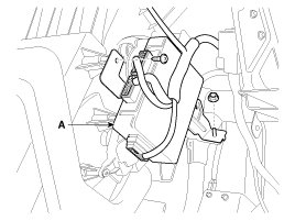 6. Remove the body control module after loosening nut (1EA) and screw (1EA) and disconnecting the connectors (A).