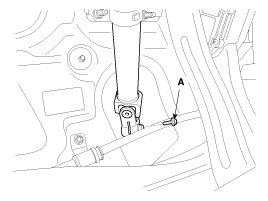 2. Loosen the bolt (A) and then disconnect the universal joint assembly from the pinion of the steering gear box.
