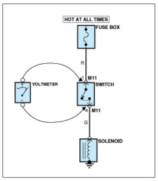 A. Connect one lead of a test lamp or voltmeter to a ground. If you are using a voltmeter, be sure it is the voltmeter's negative test lead you have connected to ground.