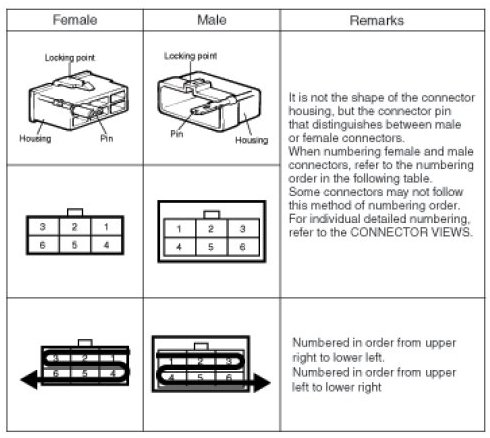 - To make it easy to distinguish connectors, the connector in the picture is indicated being installed in the vehicle.