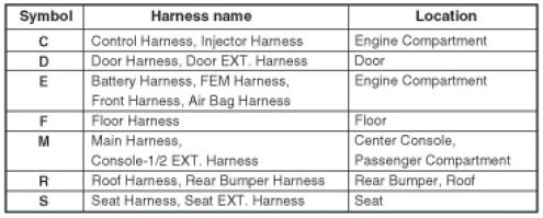 * Depending on the vehicles, it is necessary to check the harness name symbol on the harness layouts for detailed symbol.