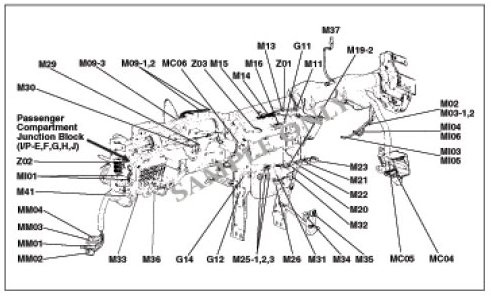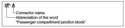 A junction block identification symbol consists of a wiring harness location classification symbol corresponding to a wiring harness location and number corresponding to the connector in the junction block.
