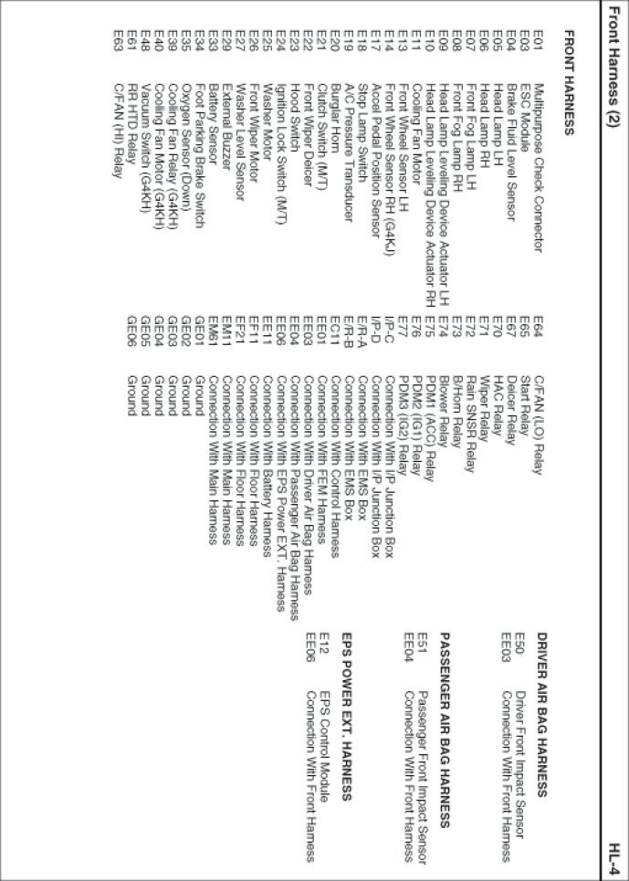 Front Harness Index: