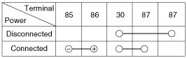 2. There should be no continuity between the No.30 and No.87 terminals when power is disconnected.