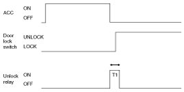 Crash Door Unlock1. FOB IN ON or KEY IN ON or ACC ON or IGN1 ON or IGN2 ON state Crash Input ON signal is ON, T1 is performed for ALL DOOR UNLOCK output. (CRASH UNLOCK output)