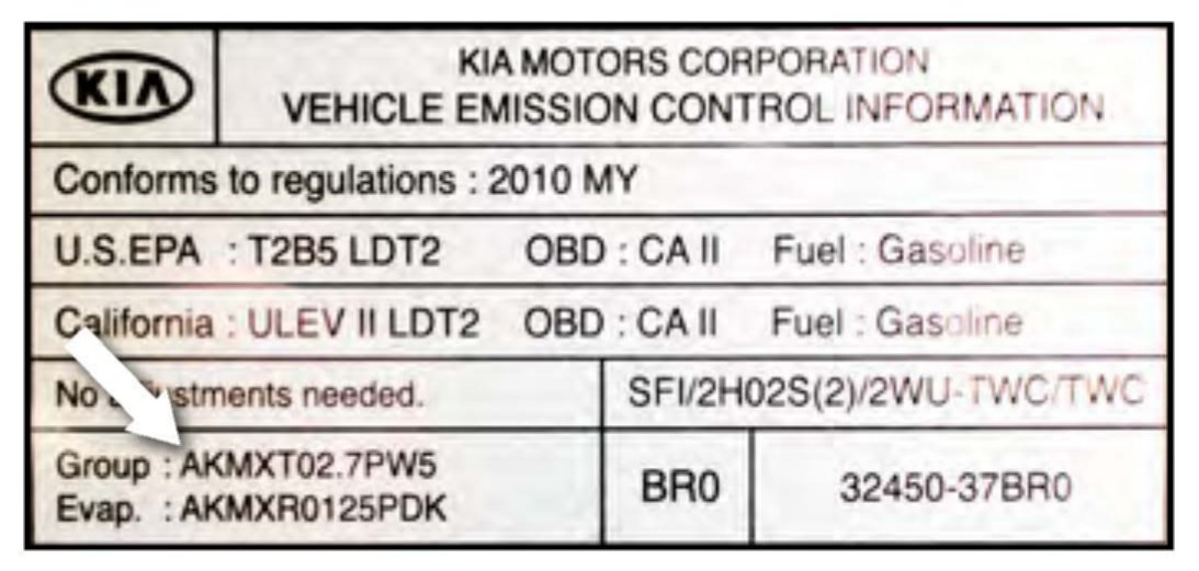 ^ Type "Group:" followed by the group number from the Vehicle Emission Control Information label in step 1.