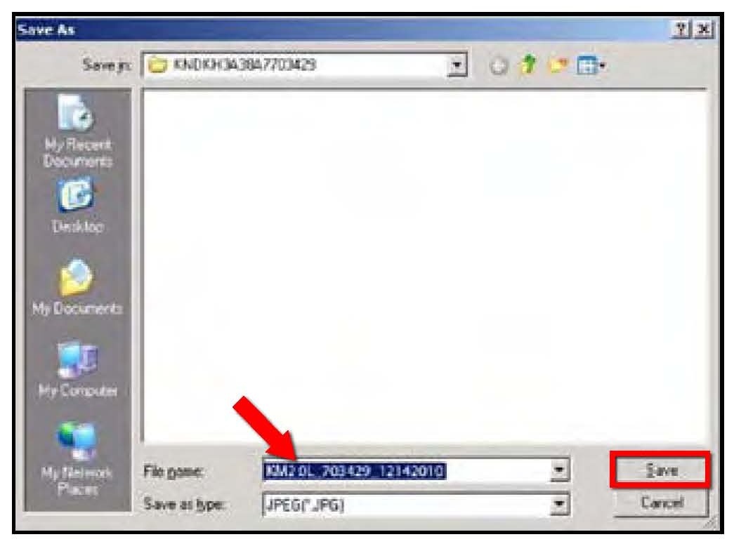 9. Select "Scantool Area - Full" and click "Send to file". The GDS will set up a designation folder and file name to save the captured data. Please change the file name to include the model/engine, the last 6 of the VIN and the date (mmddyyyy). Before saving, write down the file name and designation folder for further reference.