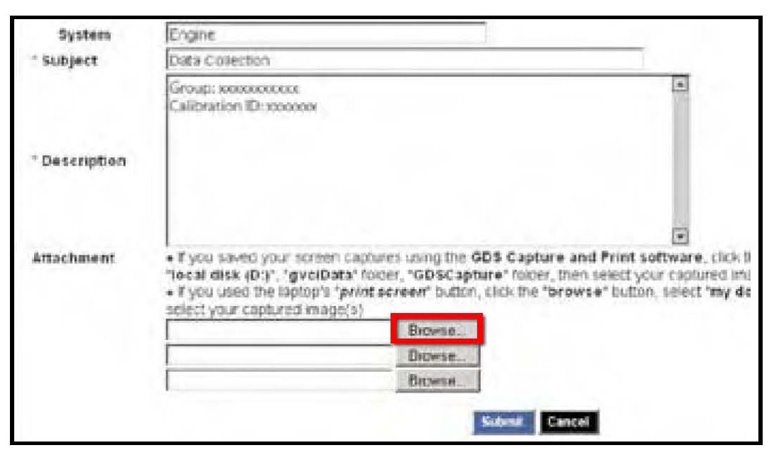 13. To attach the data to the feedback form, click on the "Browse" button.