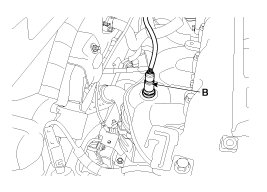2. Disconnect the connector (A), and then remove the sensor (B).
