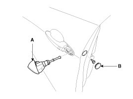 3. Disconnect the trunk antenna connector (A) and remove the trunk antenna (B) after loosening nut (2EA).