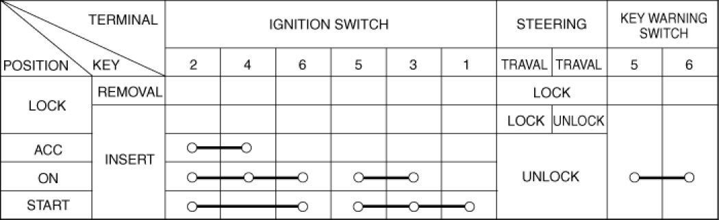 1. Disconnect the ignition switch connector and key warning switch connector from under the steering column.