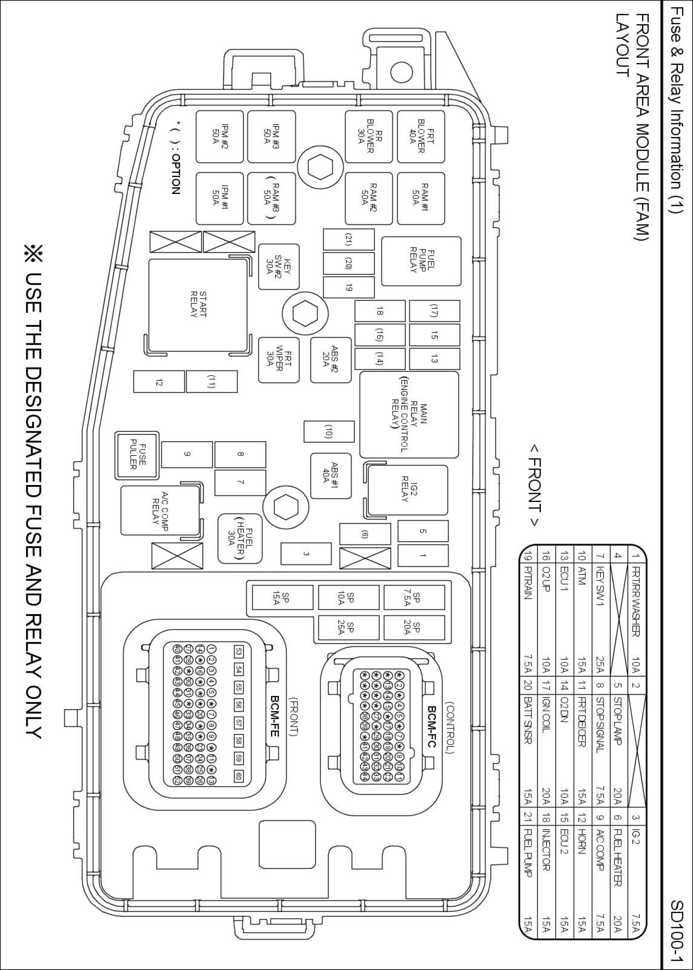 Front Area Module (FAM) View: