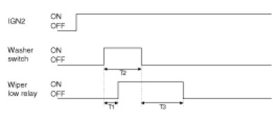 (1) Turn Washer switch ON in IGN2 ON and turn Wiper low relay ON after T1.