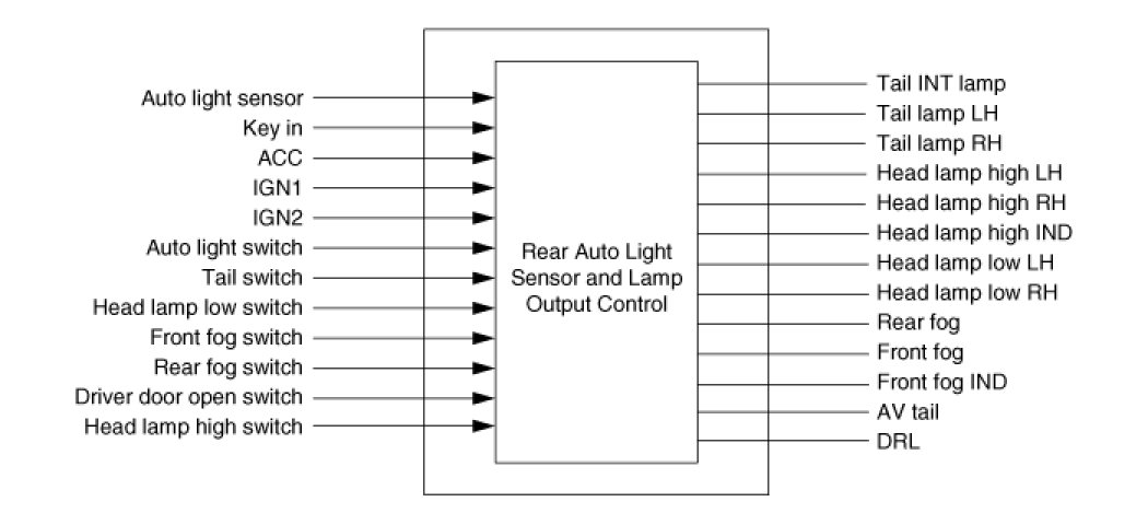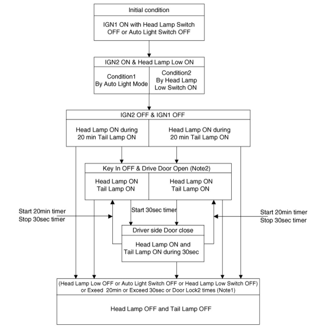 (1) Auto light function is not applicable for Europe DRL option (DRL option=GND).