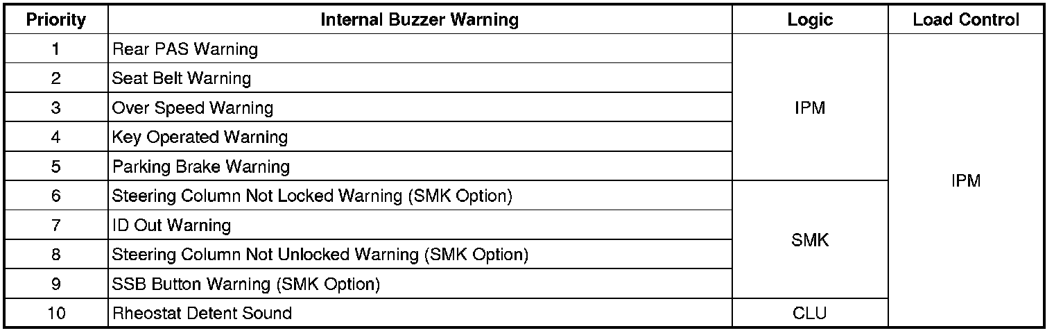 (1) Buzzer is continuously ON in 0.6 second cycle, when key in & Driver door open switch is ON.