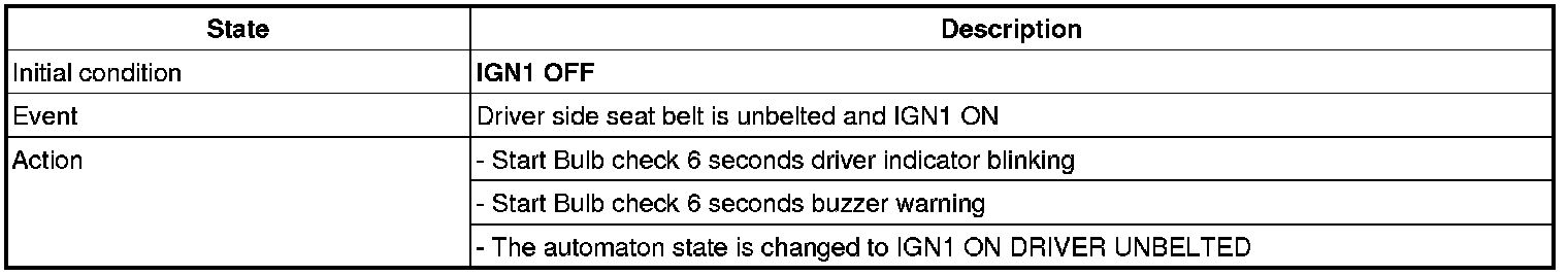 2 Bulb check 6s buzzer: If IGN1=0->1 with Unbelted, buzzer is warning.