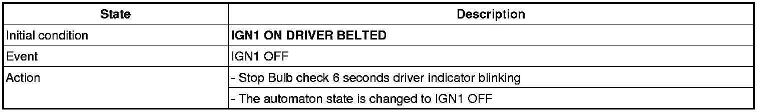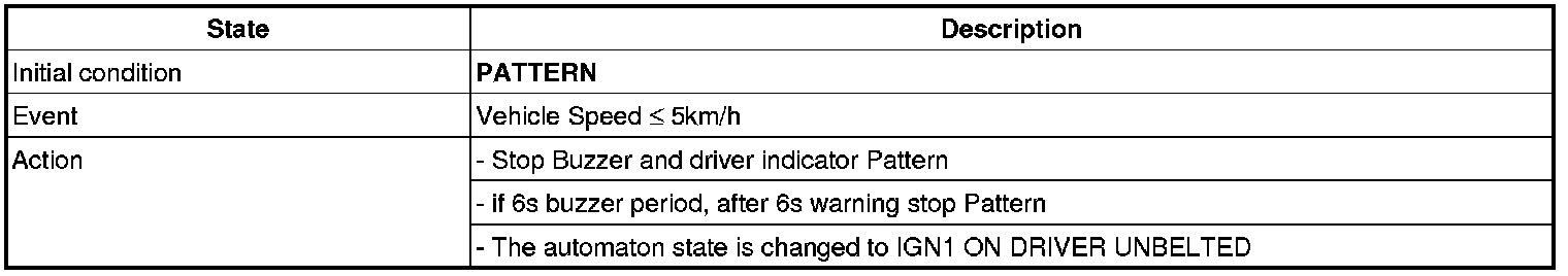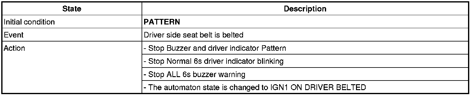 4 Normal 6s buzzer: If IGN1=1 with Belted->Unbelted, buzzer is warning.