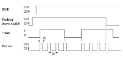 (1) If [10km = 1] with IGN1 ON and Parking brake switch ON , Buzzer output.