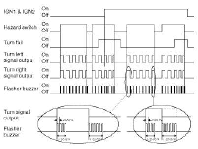In case of turn signal activation when one of the front or rear is broken-down (Lamp failure), the turn signal blinks with double frequency. Lamp failure condition as below: