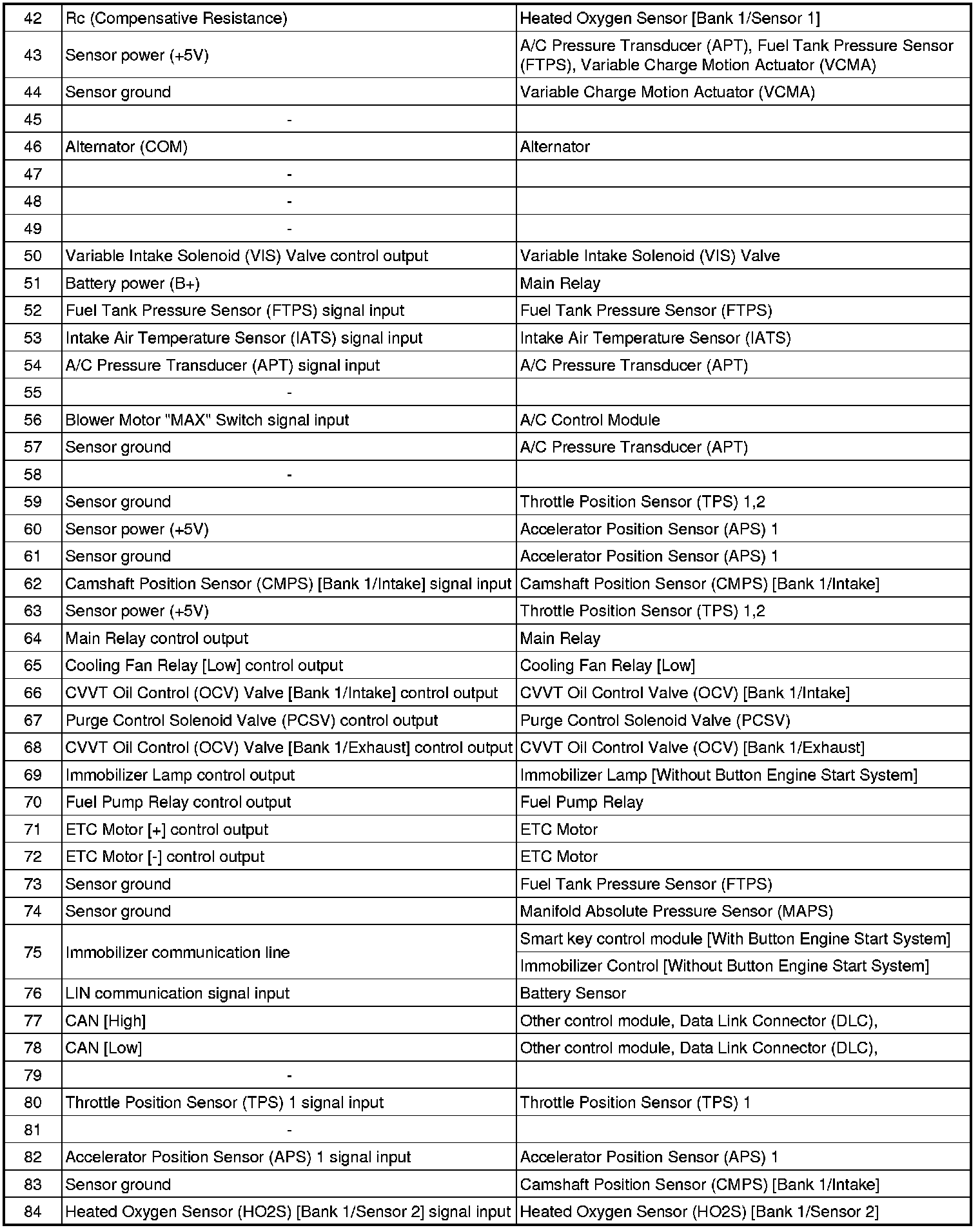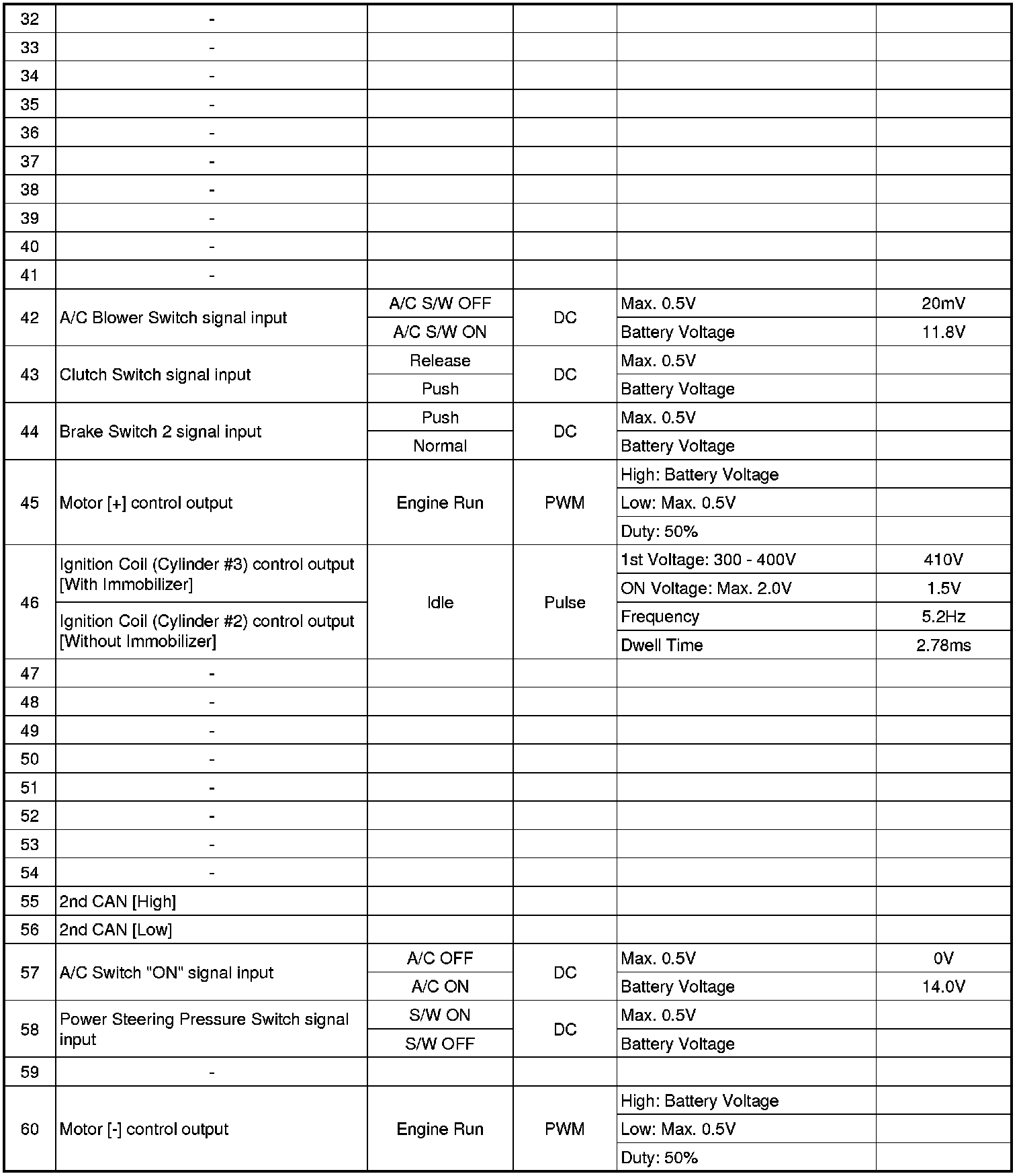 ECM Terminal And Input/Output signal
