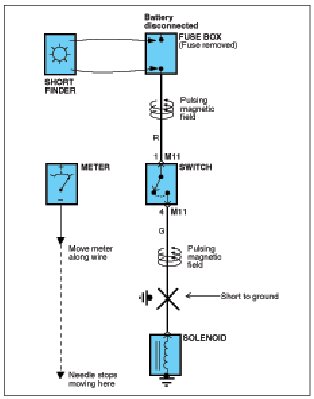 A short finder is available to locate a short to ground. The short finder creates a pulsing magnetic field in the shorted circuit and shows you the location of the short through body trim or sheet metal.