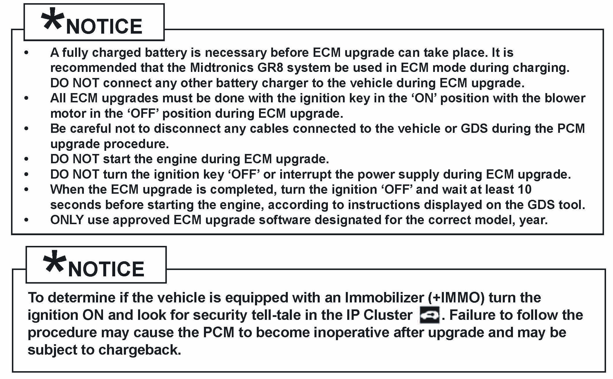 7. When the GDS tool reports that the PCM upgrade has been successfully completed click OK turn OFF the ignition key and wait at least 10 seconds before attempting to start the engine.