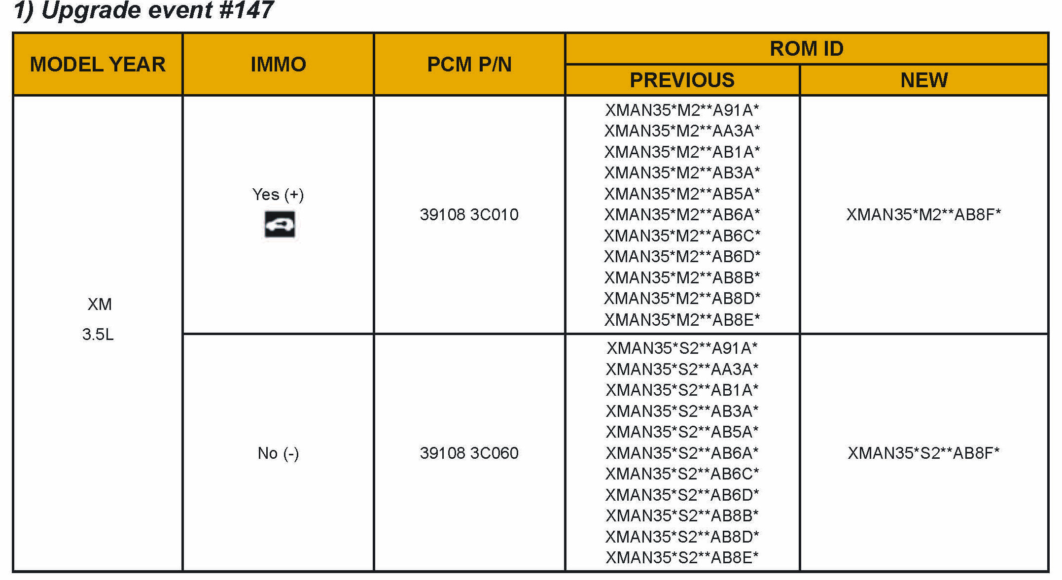 For confirmation that the latest reflash has been performed to a vehicle you are working on verify ROM ID using the tables in this TSB