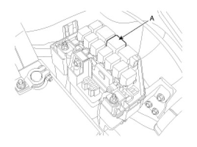 2. Remove the fuel pump relay(A) from the fuse box for fuel not to be injected while checking.