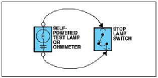 An ohmmeter can be used in place of a self-powered test lamp.