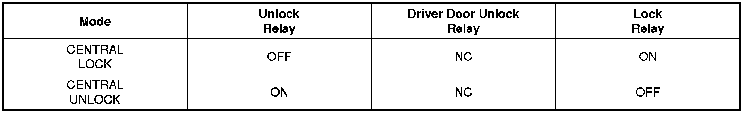 (3) Perform Driver Unlock Relay output for 1s after 0.5s when the condition becomes to be KEY IN = ON & Driver Door open Switch = OPEN & Driver Door Unlock Switch = LOCK.(Spec for North America ONLY)