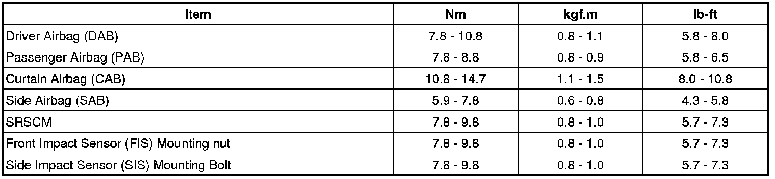 Tightening Torques