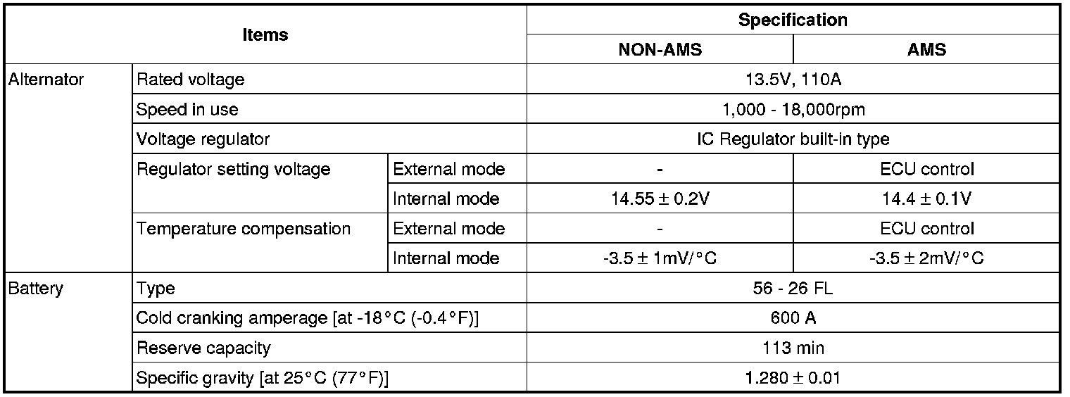 Home >> Kia >> 2011 >> Sportage 2WD L4-2.4L >> Repair and Diagnosis >> Specifications >> Electrical Specifications >> Charging System