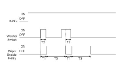 (1) Turn Wiper Enable Relay ON after T1 when turning Washer switch ON at the status of IGN2 ON and if the input of Washer switch is between 0.06 and 0.2sec, turn the output of Wiper Enable Relay OFF after T3.But, ignore the input of Washer switch occurred while Wiper Enable Relay is being operated and accept it from the input of Washer switch after operating Wiper Enable Relay.
