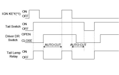 (4) When turning IGN KEY ON after the automatic blackout, Tail Lamp Relay will be turned ON and AUTO CUT function will be cancelled.