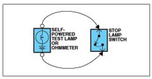 Use a self-powered test lamp or an ohmmeter to check for continuity.