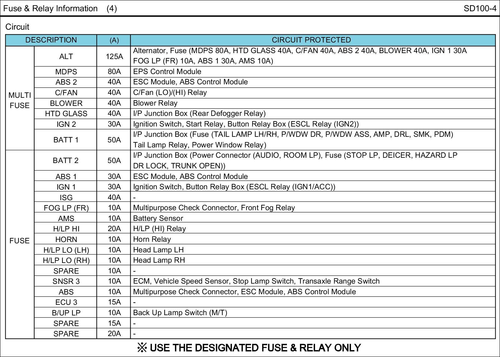 Fuse & Relay Information