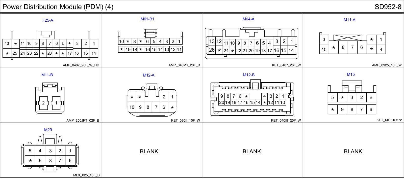 Power Distribution Module (PDM) (4) Connector Pin Outs: