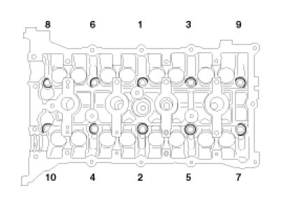 Using the SST(09221-4A000), tighten the cylinder head bolts and plate washers, in several passes, in the sequence shown.