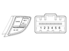 5. Disconnect the cruise control switch connector (A) and then remove the switch.