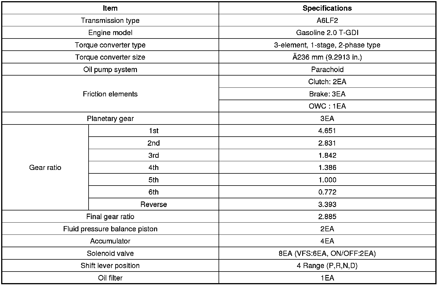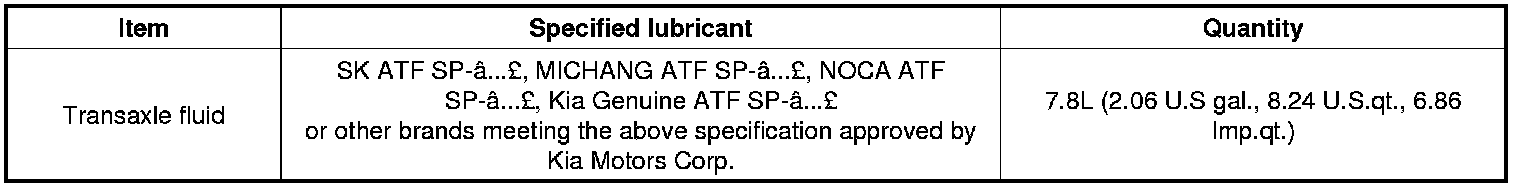 Home >> Kia >> 2012 >> Optima L4-2.0L Turbo >> Repair and Diagnosis >> Specifications >> Mechanical Specifications >> Automatic Transmission/Transaxle >> System Specifications