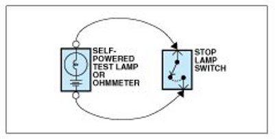 An ohmmeter can be used in place of a self-powered test lamp.